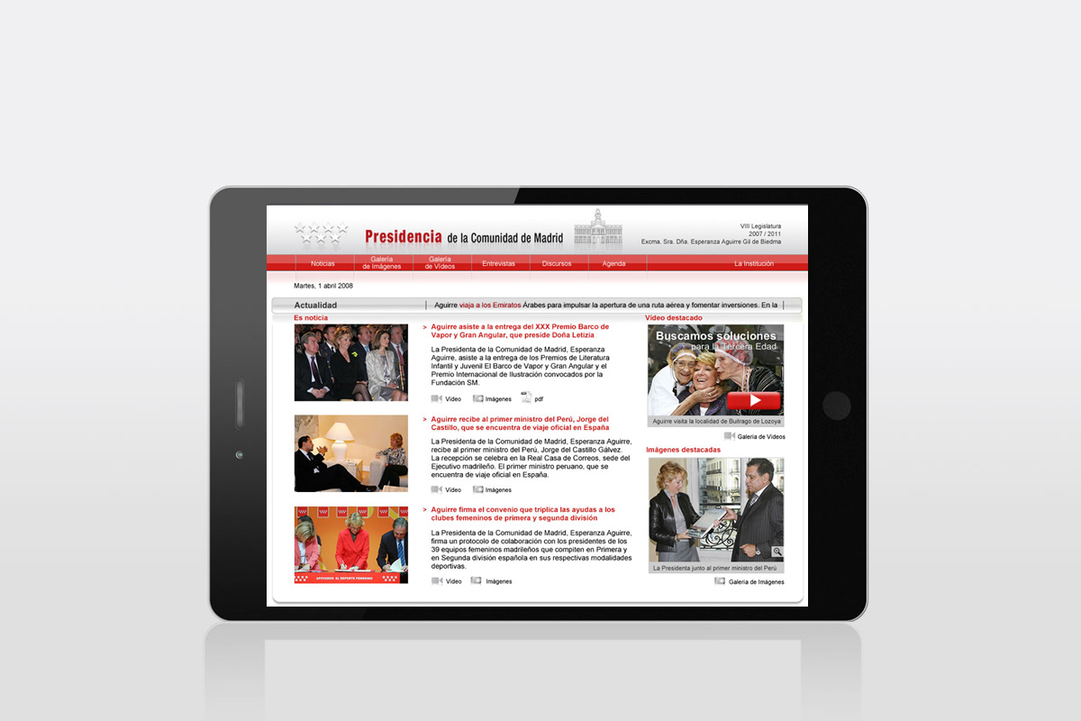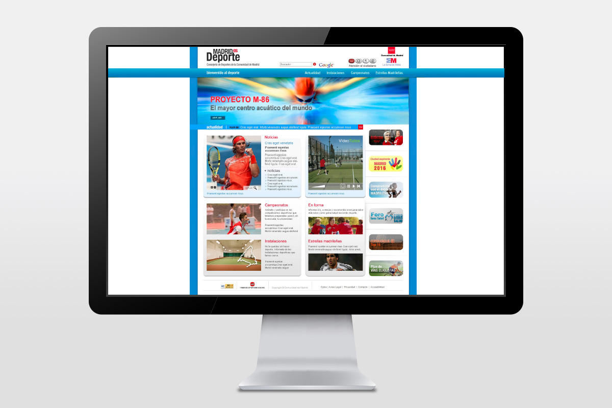 He realizado muchos diseños de sites y microsites. Gran parte de los proyectos han sido para la COMUNIDAD DE MADRID (Presidencia, Portal Deporte, Portal Vivienda, Portal Estadística, Inforjoven, Policía Local, Centro de arte 2 de mayo, Microsite «enforma»), banners, magabanners, newsletters. Revista interactiva +MAD de la Comunidad de Madrid, etc.
