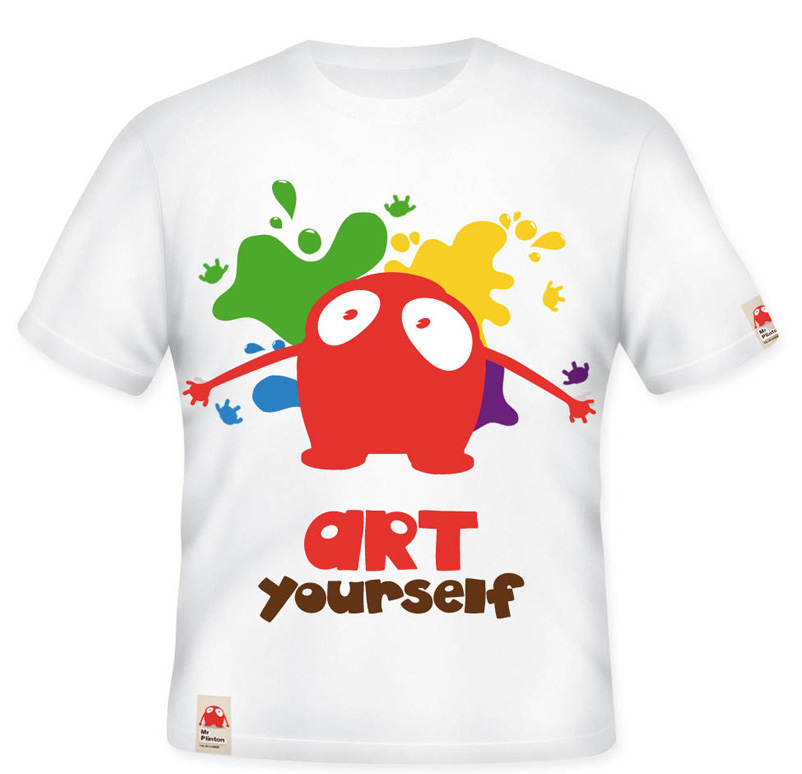 Diseño de camisetas corporativas | Mr Plinton: empresa dedicada al mundo infantil. En este diseño juego con el mundo creativo de los niños, basado en el color y el dibujo.